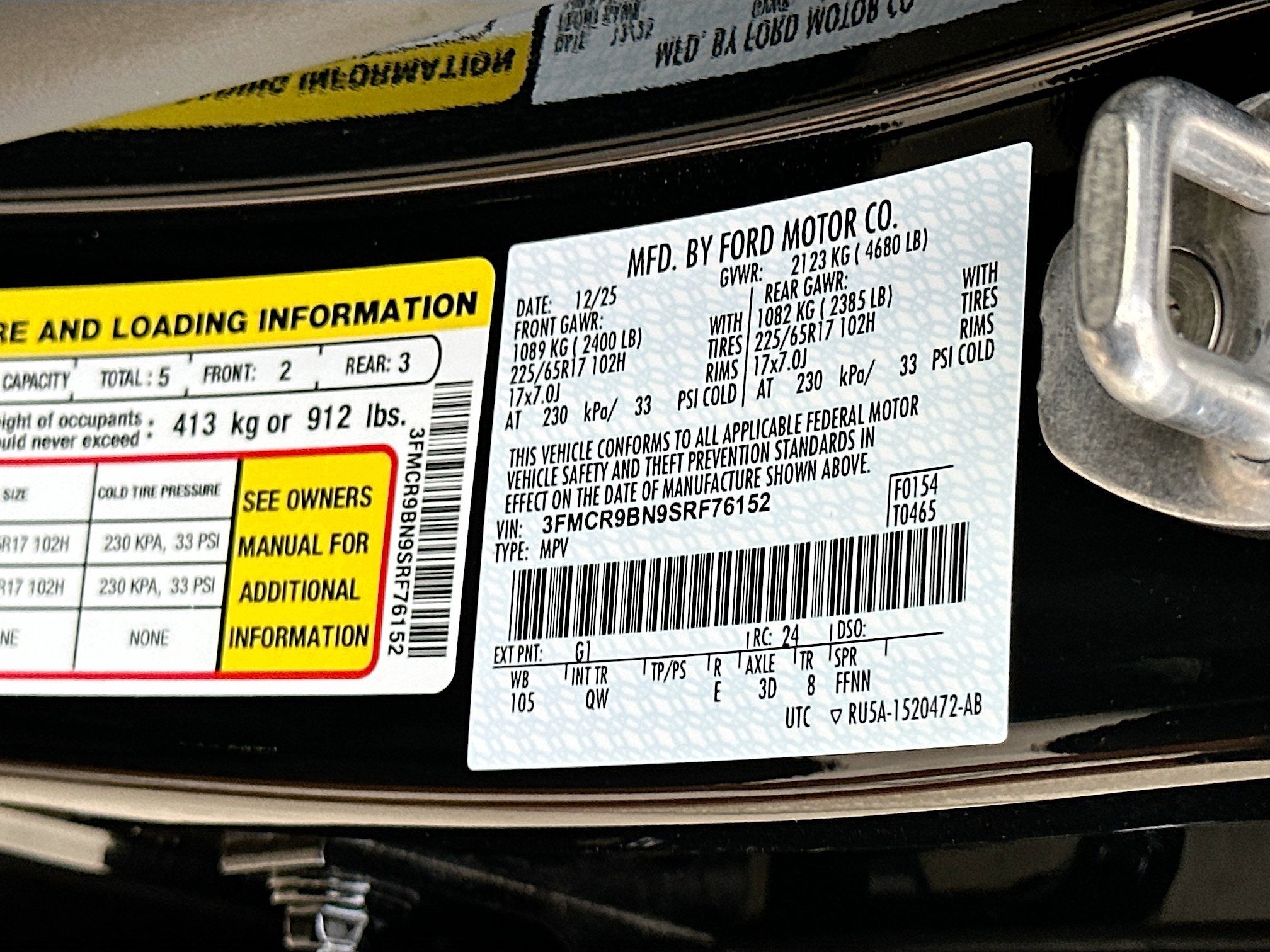 Trip Computer, Transmission: 8-Speed Automatic, Transmission w/Driver Selectable Mode, Tires: 225/65R17 102H All Season BSW, Tire Specific Low Tire Pressure Warning, Tire Mobility Kit, Tailgate/Rear Door Lock Included w/Power Door Locks, SYNC 4 w/Enhanced Voice Recognition -inc: 13.2 LCD capacitive touchscreen in center stack w/swipe capability, cloud connected, 911 Assist, wireless Apple CarPlay and Android Auto compatibility, digital owners manual and conversational voice command recognition, Strut Front Suspension w/Coil Springs, Streaming Audio.
