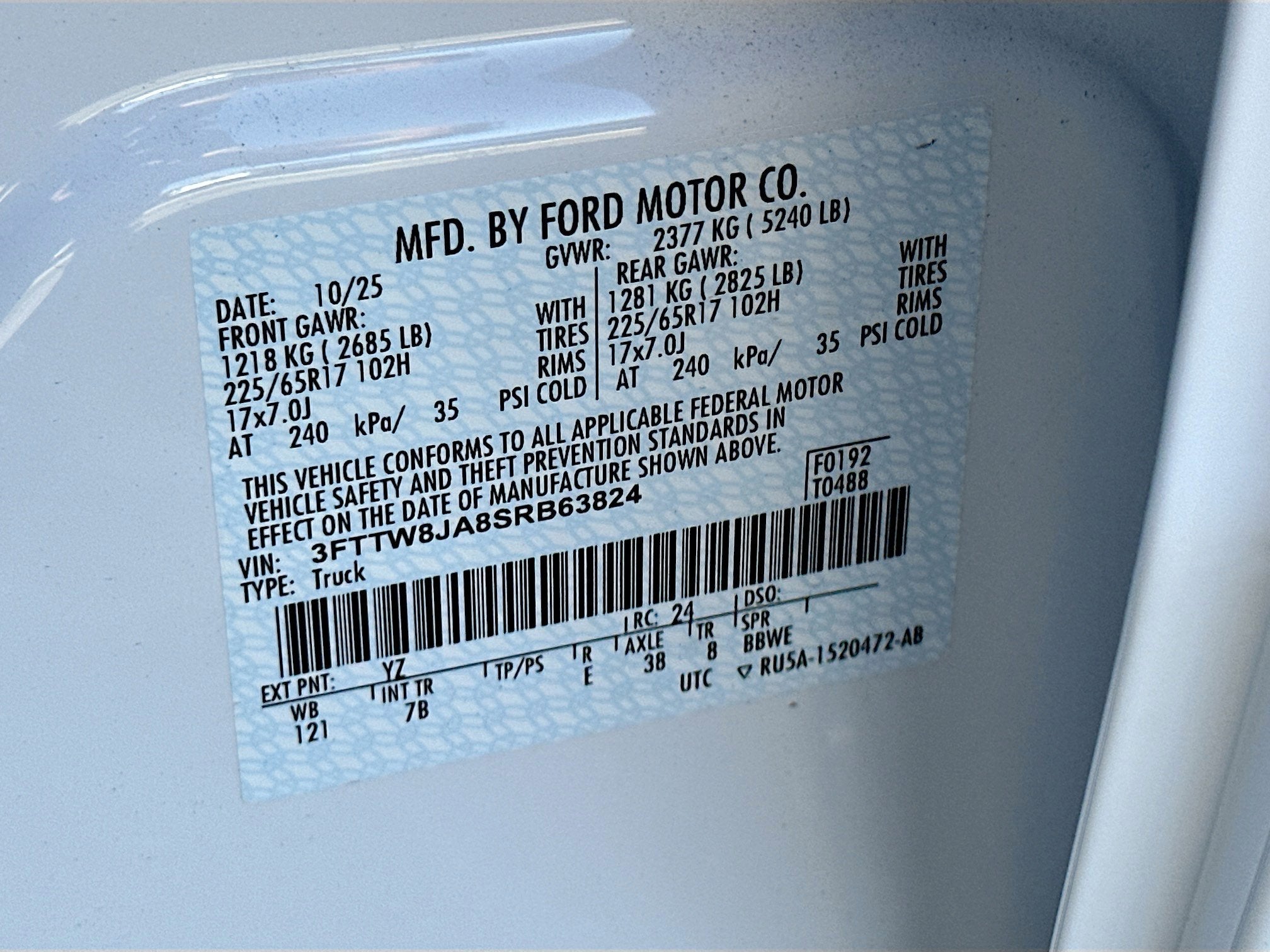 - Gross Vehicle Weight Rating Cap (lbs): 5240