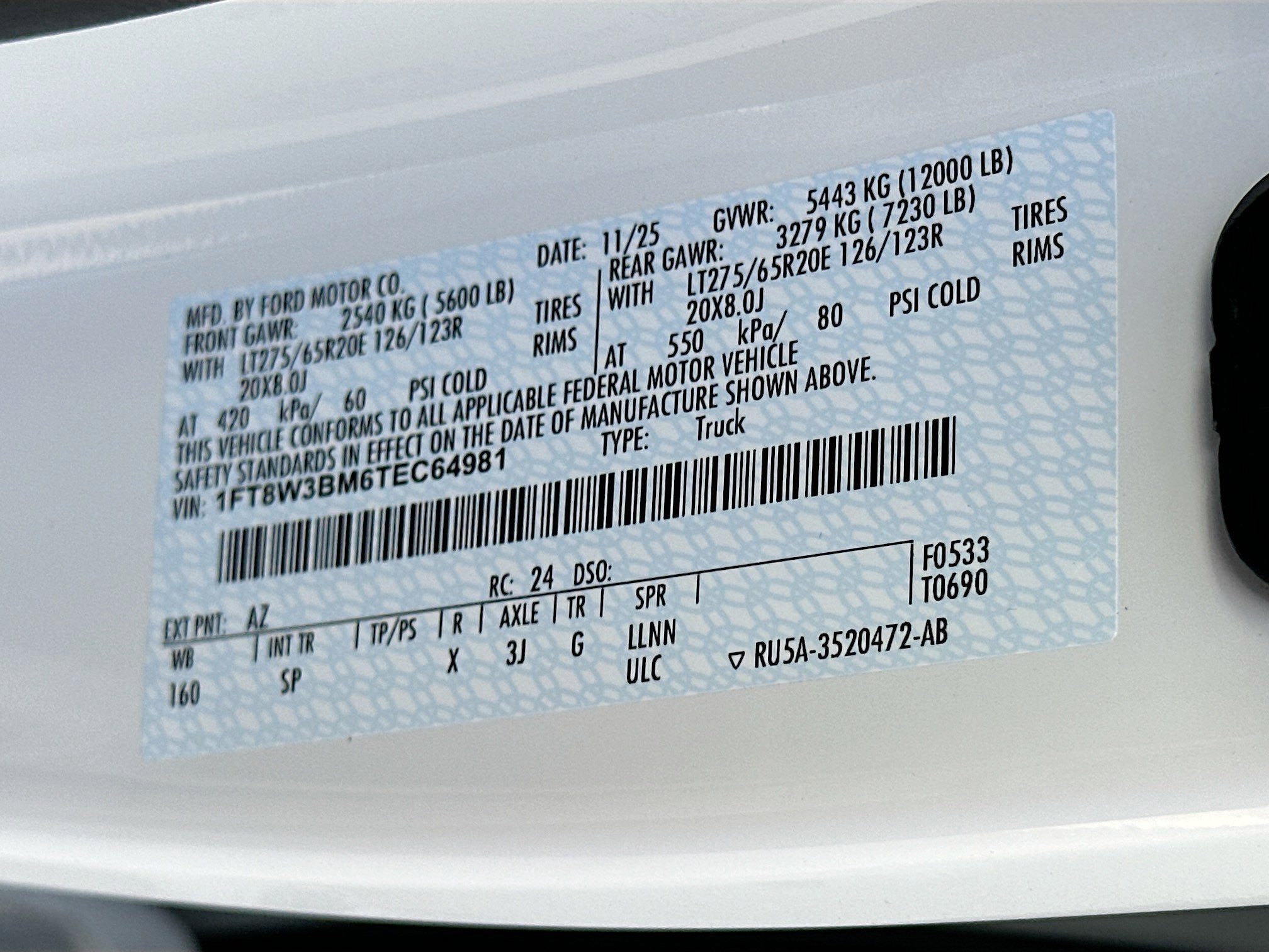 - Rear Tire Size: LT275/65SR20