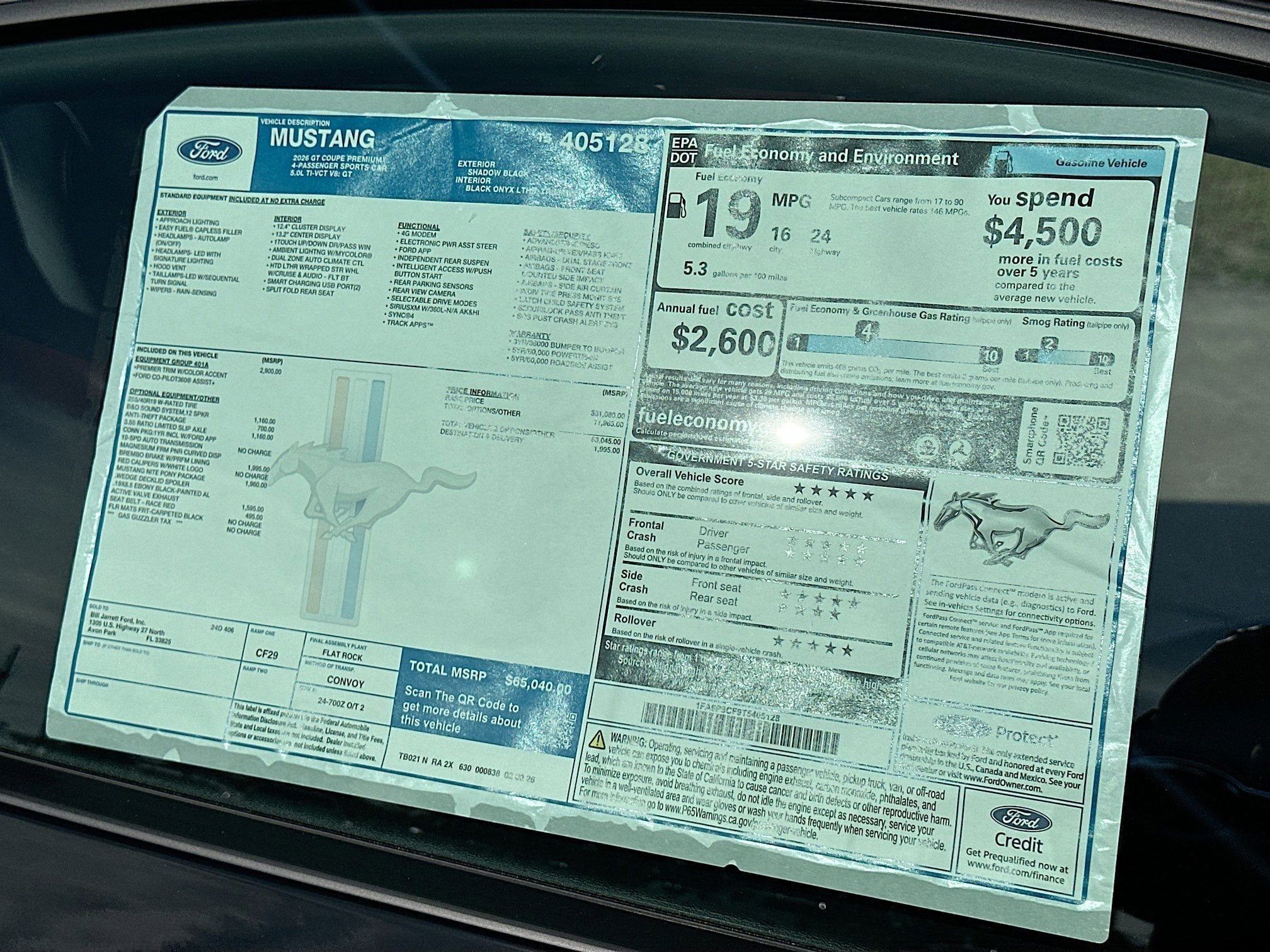 - Fuel Economy Est-Combined (MPG): 19