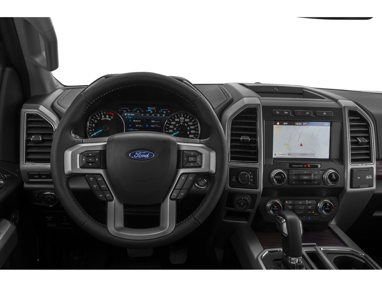 4WD, 110V/400W Outlet, 18 Machined-Aluminum Wheels, 2nd Row Heated Seats, 3.31 Axle Ratio, 4-Wheel Disc Brakes, 7 Speakers, ABS brakes, Adjustable pedals, Air Conditioning, Alloy wheels, AM/FM radio: SiriusXM, AppLink/Apple CarPlay and Android Auto, Auto-dimming door mirrors, Auto-dimming Rear-View mirror, Automatic High Beam w/Rain-Sensing Wipers, Automatic temperature control, BLIS Blind Spot Information System, Brake assist, Bumpers: chrome, CD player, Chrome 2-Bar Grille w/4 Minor Bars, Chrome Angular Step Bars, Chrome Door & Tailgate Handles w/Body-Color Bezel, Chrome Skull Caps on Exterior Mirrors, Class IV Trailer Hitch Receiver, Compass, Delay-off headlights, Driver door bin, Driver vanity mirror, Dual front impact airbags, Dual front side impact airbags, Electronic Stability Control, Emergency communication system: SYNC 3 911 Assist, Equipment Group 502A Luxury, Exterior Parking Camera Rear, Front anti-roll bar, Front Center Armrest w/Storage, Front dual zone A/C, Front fog lights, Front reading lights, Front wheel independent suspension, Fully automatic headlights, FX4 Off-Road Package, GVWR: 7,050 lbs Payload Package, Heated door mirrors, Heated front seats, Heated Steering Wheel, Higher-Capacity Radiator, Higher-Power Cooling Fans, Illuminated entry, Lariat Chrome Appearance Package, Leather-Trimmed 40/20/40 Front Seat, Leather-Trimmed Bucket Seats, LED Sideview Mirror Spotlights, Low tire pressure warning, Memory seat, Occupant sensing airbag, Outside temperature display, Overhead airbag, Overhead console, Panic alarm, Passenger door bin, Passenger vanity mirror, Pedal memory, Power door mirrors, Power driver seat, Power Glass Sideview Mirr w/Body-Color Skull Caps, Power passenger seat, Power steering, Power Tilt/Telescoping Steering Column w/Memory, Power windows, Pro Trailer Backup Assist, Quad Beam LED Headlamps & LED Taillamps/Fog Lamps, Radio data system, Radio: B&O Play Premium Audio System, Radio: Single-CD/SiriusXM w/7 Speakers, Rear reading lights, Rear seat center armrest, Rear step bumper, Rear window defroster, Remote keyless entry, Remote Start System w/Remote Tailgate Release, Reverse Sensing System, Security system, Single-Tip Chrome Exhaust, Speed control, Speed-sensing steering, Split folding rear seat, Steering wheel mounted audio controls, SYNC 3, SYNC Connect, Tachometer, Telescoping steering wheel, Tilt steering wheel, Traction control, Trailer Tow Package, Trip computer, Turn signal indicator mirrors, Universal Garage Door Opener, Upgraded Front Stabilizer Bar, Variably intermittent wipers, Ventilated front seats, Voice-Activated Touchscreen Navigation System, Voltmeter, Wheels: 18 Chrome-Like PVD, Wheels: 20 Chrome-Like PVD, Windshield Wiper De-Icer, 4WD.