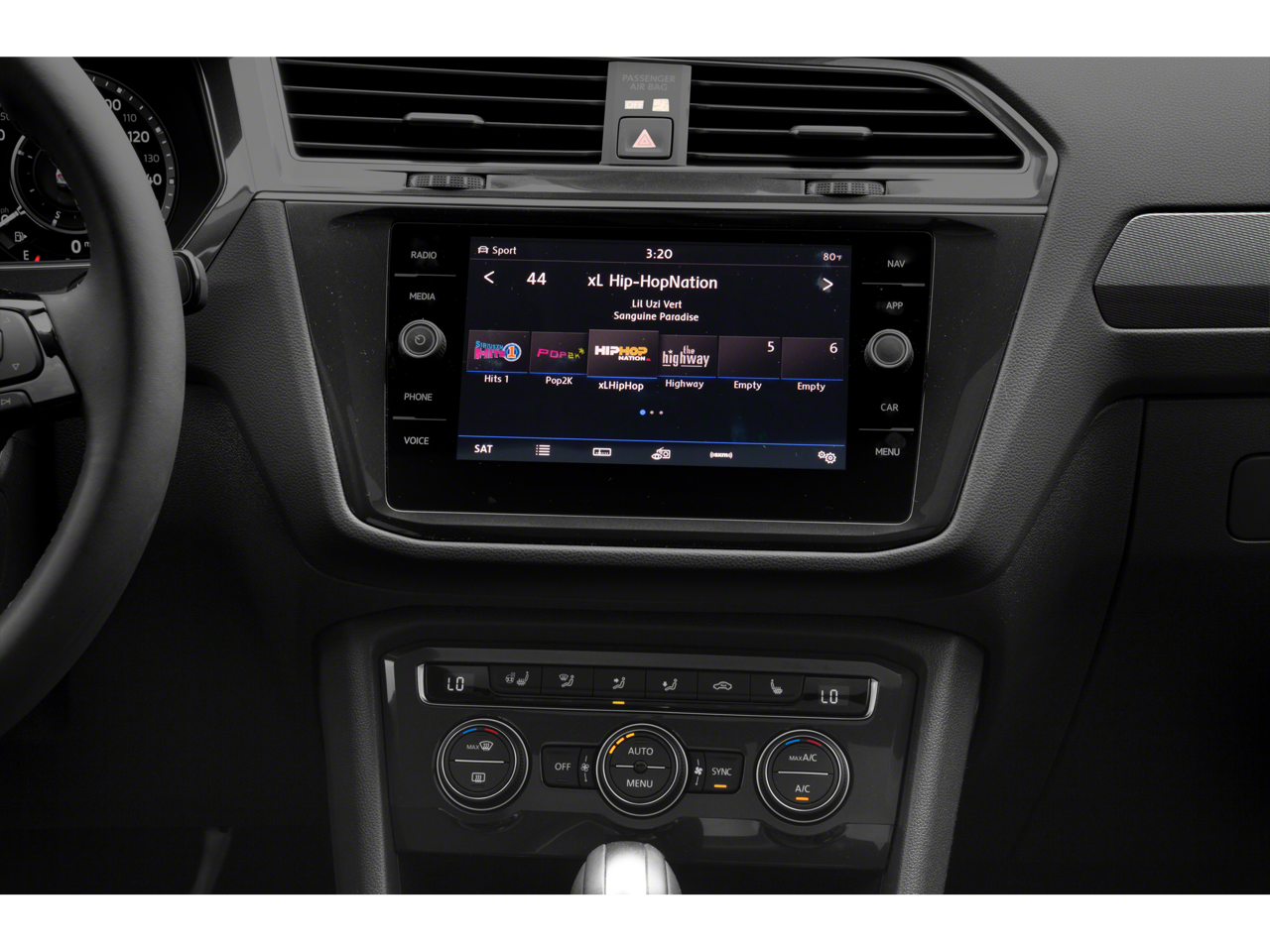 - Radio: Discover Media AM/FM/HD -inc: 8" touchscreen navigation, dual USB input, voice control, 6-speaker sound system, VW App-Connect smartphone integration and interface w/Apple CarPlay, Android Auto and MirrorLink, capability for in-vehicle 4G LTE enabled Wi-Fi (cellular data plan required; includes limited trial), capability for VW Car-Net services (capabilities for certain services vary; requires enrollment or subscription), Bluetooth connectivity (for compatible devices), SiriusXM satellite radio w/limited-time trial subscription and USB charging-only port facing 2nd row seat
