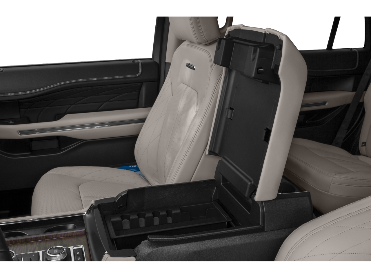 4WD, 12 Speakers, 2nd Row Leather-Trimmed Captain's Chairs w/Armrest, 3rd row seats: split-bench, 4-Wheel Disc Brakes, ABS brakes, Adaptive suspension, Adjustable pedals, Air Conditioning, Alloy wheels, AM/FM radio: SiriusXM, Auto High-beam Headlights, Auto-dimming door mirrors, Auto-dimming Rear-View mirror, Automatic temperature control, Brake assist, Bumpers: body-color, Compass, Continuous Controlled Damping (CCD), Delay-off headlights, Driver door bin, Driver vanity mirror, Dual front impact airbags, Dual front side impact airbags, Electronic Stability Control, Emergency communication system: SYNC 3 911 Assist, Engine Block Heater, Equipment Group 600A Standard Package, Exterior Parking Camera Rear, Four wheel independent suspension, Front anti-roll bar, Front Bucket Seats, Front Center Armrest, Front dual zone A/C, Front fog lights, Front reading lights, Fully automatic headlights, Garage door transmitter, Genuine wood console insert, Genuine wood dashboard insert, Genuine wood door panel insert, Heated door mirrors, Heated front seats, Heated rear seats, Heated steering wheel, Heated/Ventilated Leather Front Captain's Chairs, Heavy-Duty Engine Radiator, Heavy-Duty Trailer Tow Package, Illuminated entry, Integrated Trailer Brake Controller, Leather steering wheel, Low tire pressure warning, Memory seat, Navigation System, Occupant sensing airbag, Outside temperature display, Overhead airbag, Overhead console, Panic alarm, Passenger door bin, Passenger vanity mirror, Pedal memory, Power door mirrors, Power driver seat, Power Liftgate, Power moonroof, Power passenger seat, Power steering, Power windows, Pro Trailer Backup Assist, Radio data system, Radio: B&O Sound System by Bang & Olufsen, Rain sensing wipers, Rear air conditioning, Rear anti-roll bar, Rear audio controls, Rear reading lights, Rear window defroster, Rear window wiper, Reclining 3rd row seat, Remote keyless entry, Roof rack, Security system, SiriusXM Satellite Radio, Speed control, Speed-sensing steering, Speed-Sensitive Wipers, Split folding rear seat, Standard Safety Belt, Steering wheel memory, Steering wheel mounted audio controls, SYNC 3 Communications & Entertainment System, Tachometer, Telescoping steering wheel, Tilt steering wheel, Traction control, Trip computer, Turn signal indicator mirrors, Variably intermittent wipers, Ventilated front seats, Voltmeter, Wheels: 22 6-Spoke Painted Machined-Face Aluminum, 4WD.