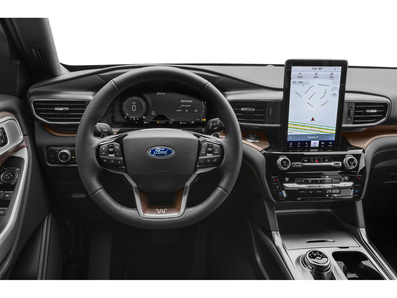 10.1 LCD Capacitive Portrait Touchscreen, 12 Speakers, 1st Row Heated Seats, 2 Additional Speakers, 2nd Row Heated Seat Controls Credit, 3.31 Non-Limited-Slip Rear Axle Ratio, 3rd row seats: bench, 4-Wheel Disc Brakes, ABS brakes, Air Conditioning, Alloy wheels, AM/FM radio: SiriusXM, Auto High-beam Headlights, Auto-dimming door mirrors, Auto-dimming Rear-View mirror, Automatic temperature control, Brake assist, Bumpers: body-color, Class IV Trailer Tow Package, Compass, Delay-off headlights, Driver door bin, Driver vanity mirror, Dual front impact airbags, Dual front side impact airbags, Electronic Stability Control, Emergency communication system: SYNC 3 911 Assist, Equipment Group 701A, Exterior Parking Camera Rear, FordPass Connect, Four wheel independent suspension, Front & Second Row Floor Liners (16B), Front anti-roll bar, Front Bucket Seats, Front Center Armrest, Front dual zone A/C, Front fog lights, Front License Plate Bracket, Front reading lights, Fully automatic headlights, Garage door transmitter, Genuine wood dashboard insert, Hands-Free Liftgate Delete, Heated door mirrors, Heated front seats, Heated rear seats, Heated steering wheel, Illuminated entry, Knee airbag, Leather steering wheel, Low tire pressure warning, Memory seat, Mesa Del Rio Lthr Htd/Vent Capt's Chairs, Navigation System, Occupant sensing airbag, Outside temperature display, Overhead airbag, Overhead console, Panic alarm, Passenger door bin, Passenger vanity mirror, Power door mirrors, Power driver seat, Power Liftgate, Power passenger seat, Power steering, Power windows, Premium Technology Pkg (Less Multi Seats) (DISC), Radio data system, Radio: B&O Sound System by Bang & Olufsen, Rain sensing wipers, Rear air conditioning, Rear anti-roll bar, Rear Auxiliary Controls Credit, Rear reading lights, Rear window defroster, Rear window wiper, Remote keyless entry, Roof rack: rails only, Security system, Speed control, Speed-sensing steering, Speed-Sensitive Wipers, Split folding rear seat, Spoiler, Steering wheel memory, Steering wheel mounted audio controls, SYNC 3 Communications & Entertainment System, SYNC 3/Apple CarPlay/Android Auto, Tachometer, Telescoping steering wheel, Tilt steering wheel, Traction control, Trip computer, Turn signal indicator mirrors, Twin Panel Moonroof, Variably intermittent wipers, Ventilated front seats, Voice-Activated Touchscreen Navigation System, Wheels: 20 10-Spoke Aluminum w/KR Center Cap.